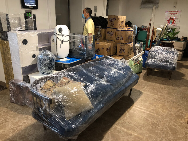 - Đội ngũ nhân viên đến phân loại và đóng gói đồ đạc.